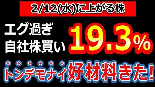 【これはガチホするしかない!エグ過ぎる大量自社株買いを発表した株!爆上げ確定級!】2/12(水)に株価が上がる株・明日上がる株・株式投資日本株最新情報