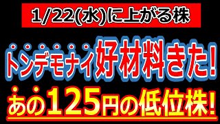 トンデモナイ好材料きた!あの125円の低位株!【1/22(水)に株価が上がる株・明日上がる株・株式投資日本株最新情報】