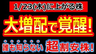 まだ誰も知らない超割安株が大増配で覚醒!【1/23(木)に株価が上がる株・明日上がる株・株式投資日本株最新情報】