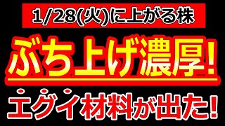 【ぶち上げ濃厚!エグイ材料が出た!】1/28(火)に株価が上がる株・明日上がる株・株式投資日本株最新情報
