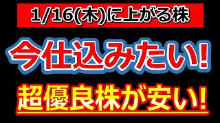 今仕込みたい!超優良株が安い!【1/16(木)に株価が上がる株・明日上がる株・株式投資日本株最新情報】