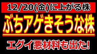 ぶちアゲきそうな株!エグイ悪材料出した株も!【12/20(金)に株価が上がる株・明日上がる株・株式投資日本株最新情報】