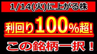 エグイ利回り100%超!この銘柄一択!【1/14(火)に株価が上がる株・明日上がる株・株式投資日本株最新情報】