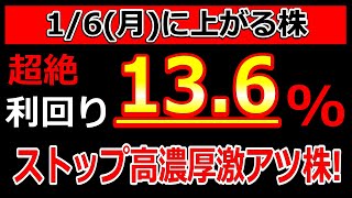 超絶利回り13.6%!えげつない材料出したストップ高濃厚激アツ株!【1/6(月)に株価が上がる株・明日上がる株・株式投資日本株最新情報】