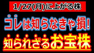 【コレは知らなきゃ損!知られざるお宝株!】1/27(月)に株価が上がる株・明日上がる株・株式投資日本株最新情報