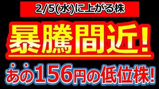 【歴史的快挙!あの156円の低位株が大転換点で暴騰間近!】2/5(水)に株価が上がる株・明日上がる株・株式投資日本株最新情報