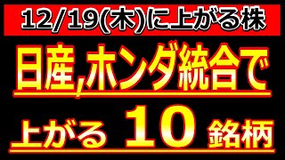 日産、ホンダが経営統合で株価が上がる株!【12/19(木)に株価が上がる株・明日上がる株・株式投資日本株最新情報】