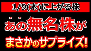 あの無名株がまさかのサプライズ!【1/9(木)に株価が上がる株・明日上がる株・株式投資日本株最新情報】