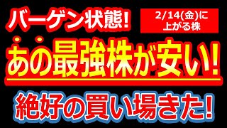 【待ちに待った絶好の買い場きた!あの最強株が半年ぶりの安値でバーゲン状態!】2/14(金)に株価が上がる株・明日上がる株・株式投資日本株最新情報