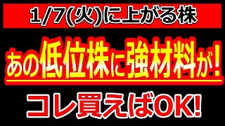 あの低位株に強材料がでた!コレ買えばOK!【1/7(火)に株価が上がる株・明日上がる株・株式投資日本株最新情報】