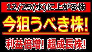 今狙うべき株!利益倍増!超成長株!【12/25(水)に株価が上がる株・明日上がる株・株式投資日本株最新情報】