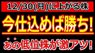 今仕込めば勝ち!あの低位株が激アツ!【12/30(月)に株価が上がる株・明日上がる株・株式投資日本株最新情報】
