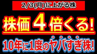 【株人生最大の衝撃!株価4倍確定級!10年に1度のヤバすぎる株!】2/3(月)に株価が上がる株・明日上がる株・株式投資日本株最新情報