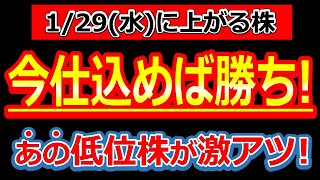 【2倍狙える激アツ低位株!好材料発表で下落からの反発くる!】1/29(水)に株価が上がる株・明日上がる株・株式投資日本株最新情報