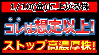 コレは想定以上の好材料!ストップ高濃厚株!【1/10(金)に株価が上がる株・明日上がる株・株式投資日本株最新情報】