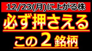 必ず押さえる!この2銘柄!【12/23(月)に株価が上がる株・明日上がる株・株式投資日本株最新情報】