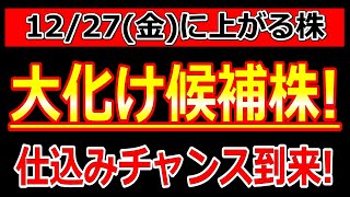 大化け候補株!仕込みチャンス到来!【12/27(金)に株価が上がる株・明日上がる株・株式投資日本株最新情報】