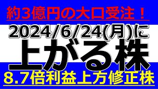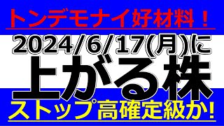2024/6/17(月)に株価が上がる株、株式投資・デイトレの参考に。トンデモナイ好材料!ストップ高確定級か!