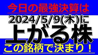 2024/5/9(木)に株価が上がる株、株式投資・デイトレの参考に。今日の最強決算はこの銘柄で決まり!増配で配当利回り5%超銘柄多数!