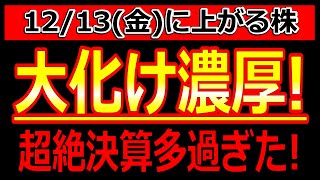 大化け濃厚株!超絶決算多過ぎた!【12/13(金)に株価が上がる株・明日上がる株・株式投資日本株最新情報】