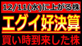 エグイ好決算でたぞ!買い時到来した株!【12/11(水)に株価が上がる株・明日上がる株・株式投資日本株最新情報】