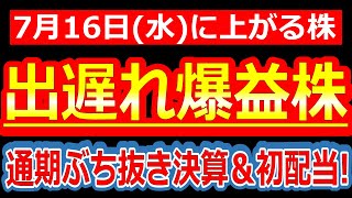 【営業益14倍&純益33倍!?通期ぶち抜き決算&初配当発表で株価暴れる!?】7/16(水)に株価が上がる株・明日上がる株・来週上がる株・株式投資日本株最新情報