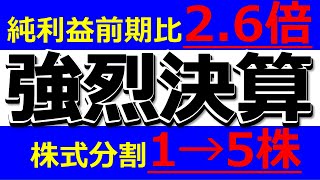 強烈決算!純利益前期比2.6倍!株式分割1→5株