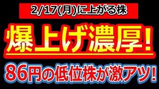 【たった86円の低位株が利益17倍の超絶決算発表で株価+30%濃厚か!?】2/17(月)に株価が上がる株・来週上がる株・明日上がる株・株式投資日本株最新情報