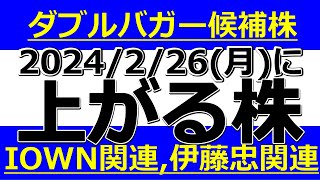 2024/2/26(月) に株価が上がる株、ストップ高候補株、来週の決算スケジュール、株式投資・デイトレの参考に。三井E&S、enish、ACCESS、ナルネット