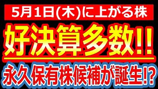 【決算発表本格化!見逃せない好決算多数!永久保有株候補が誕生?】5/1(木)に株価が上がる株・来週上がる株・明日上がる株・株式投資日本株最新情報