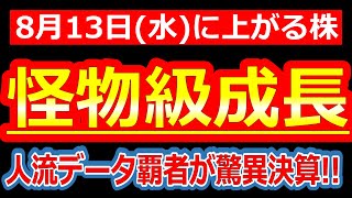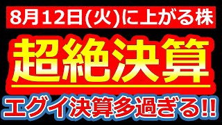 【エグイ決算多過ぎる!860社の中から厳選した超絶決算はコレだ!】8/12(火)に株価が上がる株・明日上がる株・来週上がる株・株式投資日本株最新情報