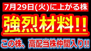 【株価ブースト待ったなし】上振れ決算×超増配の黄金パターン発動!7/29(火)に株価が上がる株・明日上がる株・来週上がる株・株式投資日本株最新情報