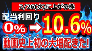 【動画史上初!!初配でいきなり配当利回り10%超!!時価総額たった29億円の小型株がトンデモナイ大増配発表!!】2/26(水)に株価が上がる株/明日上がる株/バーゲン株/株式投資日本株最新情報