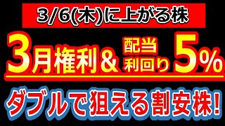 【本日はギュッと凝縮18分!!!3月権利&配当利回り5%!ダブルで狙える割安株!】3/6(木)に株価が上がる株/明日上がる株/バーゲン株/株式投資日本株最新情報