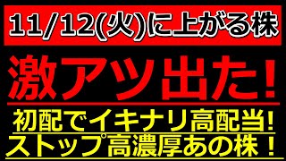 激アツ材料出たぞ!初配でイキナリ高配当になった株!【11/12(月)に株価が上がる株・明日上がる株・株式投資日本株最新情報】