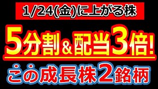 5分割&配当3倍!この成長株2銘柄!【1/24(金)に株価が上がる株・明日上がる株・株式投資日本株最新情報】