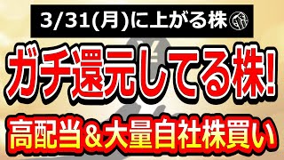 【この銘柄はガチで株主還元してます!高配当&大量自社株買い!】3/31(月)に株価が上がる株/明日上がる株/バーゲン株/明日から使える株式投資日本株最新情報