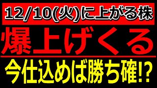 爆上げきそうな株!今仕込めば勝ち確!?配当1.5倍増額!【12/10(火)に株価が上がる株・明日上がる株・株式投資日本株最新情報】