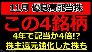 4年で配当が4倍になった株!11月の高配当株はこの4銘柄が注目!