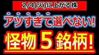 【配当利回り7%!あの117円の低位株に激アツ材料!アツすぎて選べない怪物5銘柄!】2/4(火)に株価が上がる株・明日上がる株・株式投資日本株最新情報