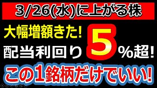 【ホルダー歓喜のエグイ増配!配当利回り5%超になった株!明日はこの銘柄だけでいい!】3/26(水)に株価が上がる株/来週上がる株/バーゲン株/明日から使える株式投資日本株最新情報