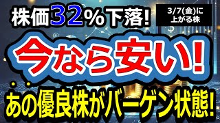【今なら安い!あの優良株がバーゲン状態で絶好の買い場きた!累進配当宣言もしている株!】3/7(金)に株価が上がる株/明日上がる株/バーゲン株/株式投資日本株最新情報