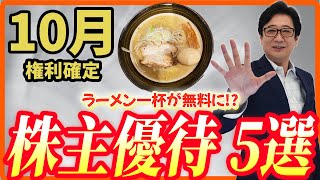 優待でラーメン一杯が無料に!? 10月権利確定!株主優待銘柄5選!!