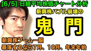 [6/5]日経平均株価チャート分析:新興株バブル崩壊の鬼門(7月、10月、年末年始は特に暴落に警戒?)