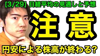 日経平均チャート見通しと予想:指値オペで円安もピーク?(3/29版)