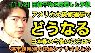 [11/2]アメリカ大統領選挙で日本株どうなる?(日経平均チャート予想と見通し)