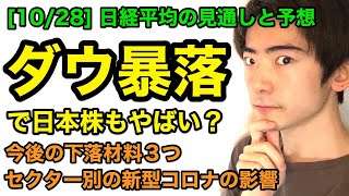 [10/28]ダウ暴落で日本株もやばい?(日経平均チャート見通しと予想)