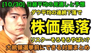 [10/30]日本株の株価暴落リスク…そろそろやばい?(日経平均チャート見通しと予想)