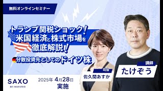 たけぞう氏による「トランプ関税ショック!米国経済と株式市場を徹底解説!~分散投資先としてのドイツ株~」