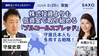 守屋史章氏による「株式投資よりも低資金で取り組める 「ブルコールスプレッド」 守屋氏本人も多用する戦略!」守屋史章氏による「株式投資よりも低資金で取り組める 「ブルコールスプレッド」 守屋氏本人も多用する戦略!」